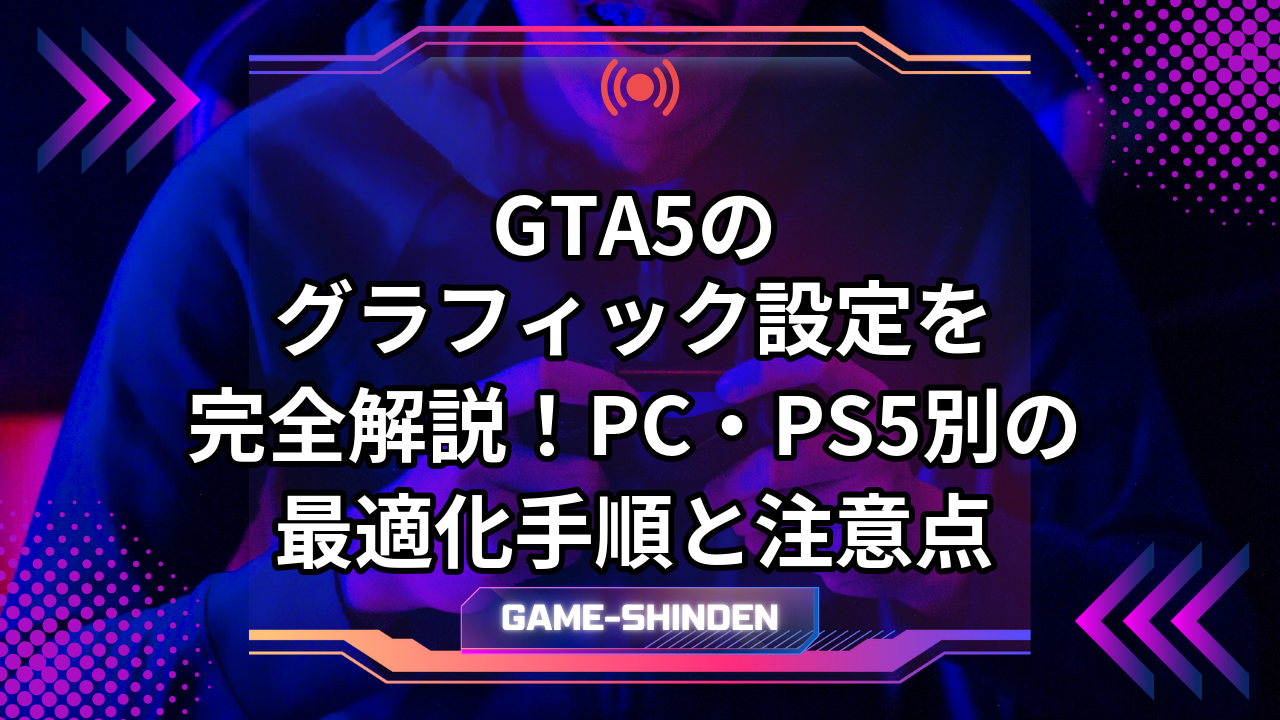 - GTA5のグラフィック設定はPC版とPS5版で仕組みが異なり、PC版は項目別の細かな調整が可能でPS5版はモード選択式である