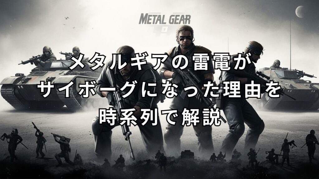 メタルギアソリッドシリーズに登場する人気キャラクター、雷電。 MGS2では生身の人間として登場した彼が、MGS4ではなぜサイボーグの姿になっていたのか、疑問に思った方も多いのではないでしょうか。 この記事では、雷電がサイボーグになった理由を公式設... -