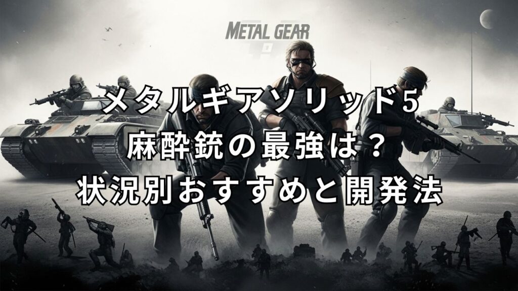 メタルギアソリッド5 ファントムペイン(MGS5:TPP)の広大なフィールドでステルス潜入を成功させるには、敵を殺さずに無力化できる「麻酔銃」が欠かせません。 しかし、麻酔ハンドガンから麻酔スナイパーライフルまで種類が多く、「結局どの麻酔銃が最強な... -