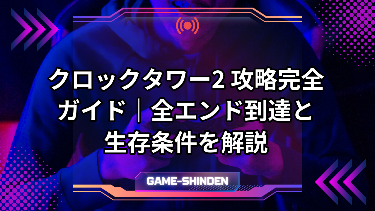 この記事では、プロローグからラストシナリオまでの攻略チャートはもちろん、全エンディングの分岐条件やキャラクター全員の生存条件まで、クロックタワー2の攻略に必要なすべての情報を網羅的に解説していきます。