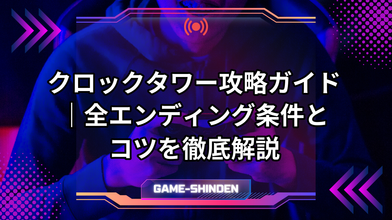 この記事では、全9種類のエンディング条件からマップ構造、重要アイテムの入手場所、シザーマンの撃退方法まで、クロックタワーの攻略に必要な情報をすべて網羅しています。