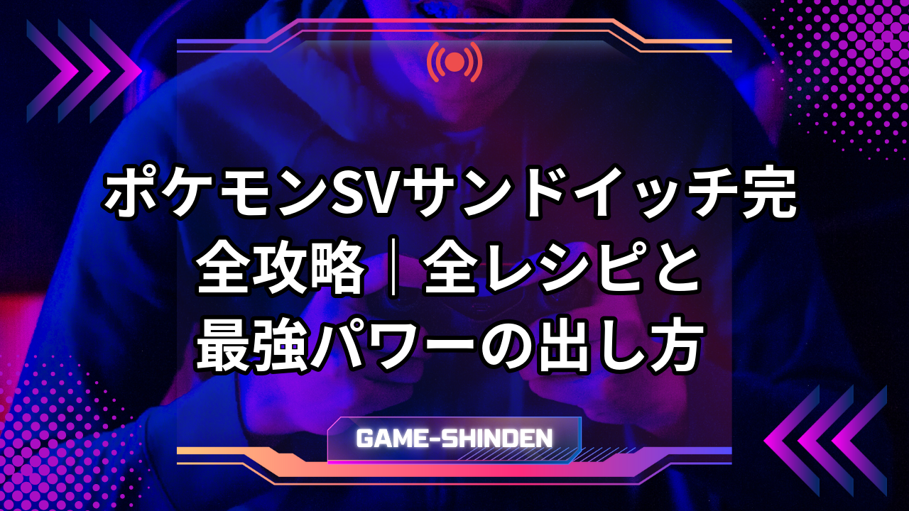 この記事では、サンドイッチの基本的な仕組みから全レシピの入手方法、色違い厳選に最適なかがやきパワーの出し方、そうぐうパワーとの両立テクニック、さらに星4サンドイッチの攻略法やマルチプレイでの活用術まで、知っておくべき情報をすべて網羅しています。