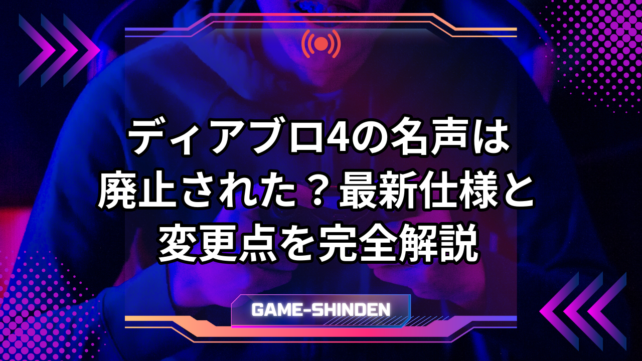 - 名声(Renown)はディアブロ4の地域別ポイントシステムで、シーズン11以降はシーズン領域から削除されエターナル領域のみに存続している