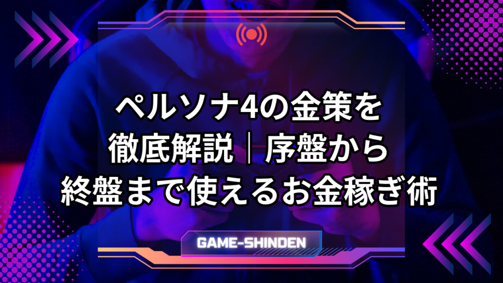 ペルソナ4ゴールデン(P4G)を遊んでいると、武器や防具の購入費用、ペルソナ全書からの引き出しコスト、スキルカードの複製費用など、あらゆる場面でお金が必要になります。 特に序盤から中盤にかけては慢性的な金欠に陥りやすく、装備更新が追いつかない...