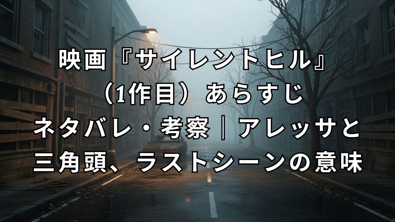 この記事では、映画『サイレントヒル』のあらすじ(ネタバレなし・あり)、登場するクリーチャー「三角頭(レッドピラミッド)」の役割、衝撃的だったラストシーンの意味についての考察、あとは動画配信サービス(VOD)での視聴方法について、詳しく解説していこうと思います。