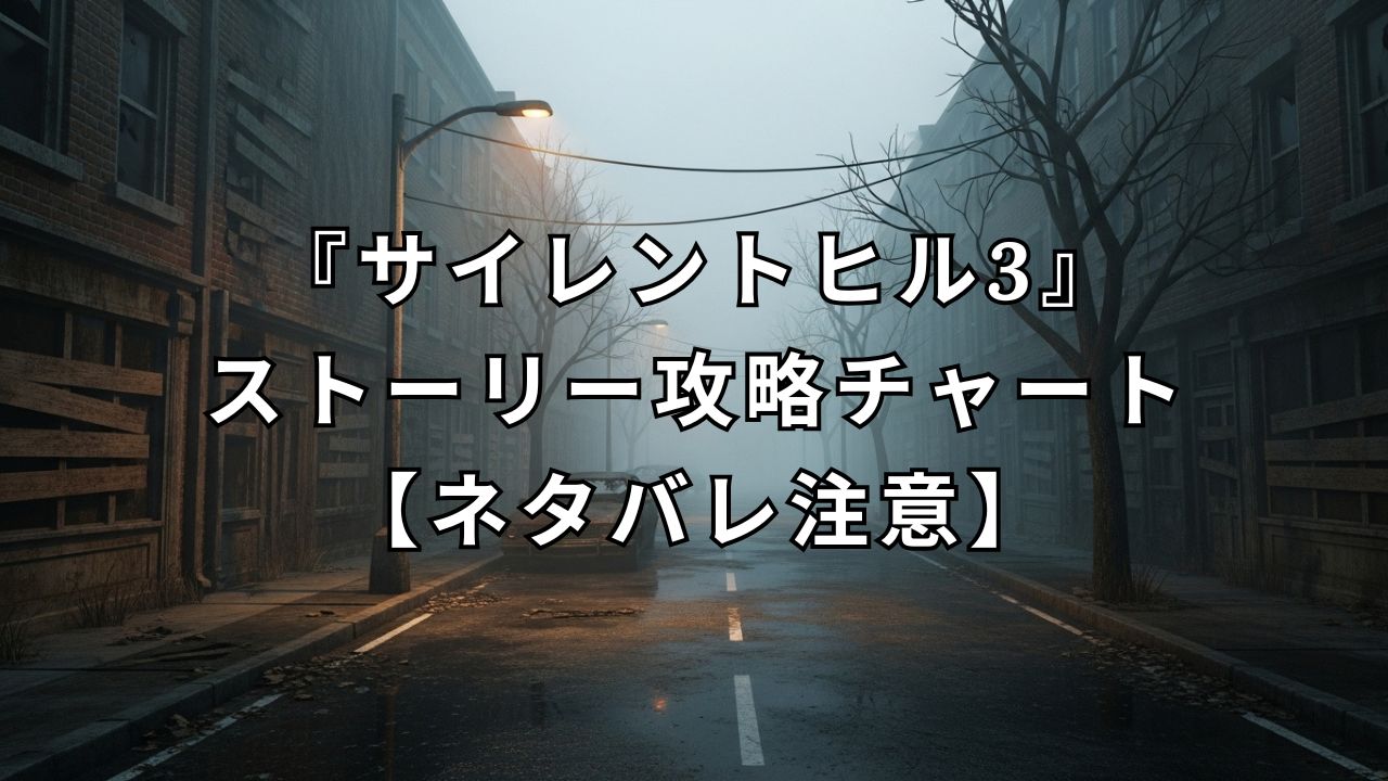 この記事では、これからプレイする人とか、攻略で詰まっちゃった人向けに、『サイレントヒル3』のストーリー攻略チャートから、謎解きの答え、あとはエンディングの分岐条件まで、必要な情報をまとめて解説していきます。